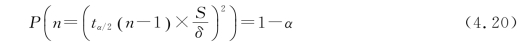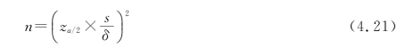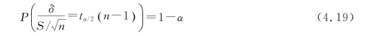 即如果按照式(4.20)计算出来的样本容量n 随机抽样,所得到的样本均值与总体均值μ的误差,不超过δ的概率为1-α。