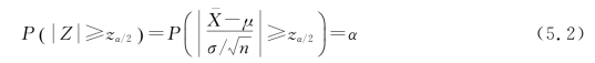 由p 值法(如图5.4所示)可知,如果α=0.05,由Z 服从N(0,1)分布的图形很容易知道,zα/2右侧的面积(概率)应当为0.025,-zα/2左侧的面积(概率)也应当为0.025,当z 在zα/2的右侧或在-zα/2的左侧时,在z 的密度函数N(0,1)图上,z 就远离32.50,所以拒绝μ=32.50的假设。