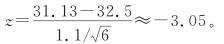 例5.4 根据长期经验和对资料的分析,某袋装糖果的重量X 服从正态分布,方差σ2=1.21。随机抽取6袋该袋装糖果,测得其重量(单位为g)如下:32.56、29.66、31.64、30.00、31.87、31.03,检验这批袋装糖果的平均重量为32.50 g是否成立(α=0.05)?