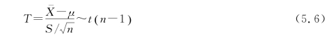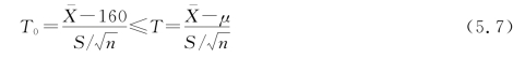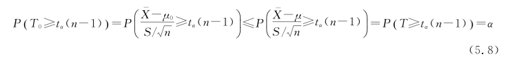 设总体X~N(μ,σ2)。关于总体参数μ、σ2的假设检验问题,本节介绍本章开篇提到的情况二的单尾检验情况。由题意可知,例5.5就属于这种情况:未知方差σ2,检验原假设H0:μ≤μ0,备择假设H1:μ>μ0。