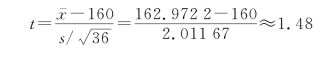 ②因为1.48<1.6896,所以,由样本值计算出统计量的值没有落在拒绝域内,因此接受H0,即该校初中男生的平均身高小于或等于160cm。