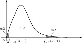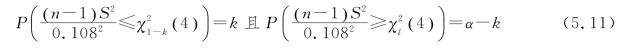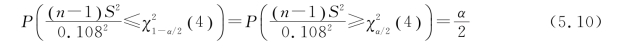 例5.6 某炼铁厂的铁水含碳量X 在正常情况下服从正态分布。现对操作工艺进行了某些改进,从中抽取5炉铁水,测得其含碳量数据如下:4.412、4.052、4.357、4.287、4.683,据此是否可以认为新工艺炼出的铁水含碳量的方差仍为0.1082(α=0.05)。