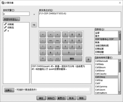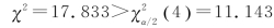 由χ2=17.833,用SPSS(如图5.10所示)求出其右侧概率的2倍,并将其和检验水平α=0.05作比较。