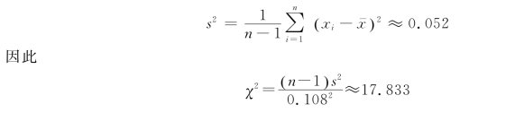 解:建立待检假设H0:σ2=0.1082;H1:σ2≠0.1082。在H0成立时,样本来自总体N(μ,0.1082)。这时