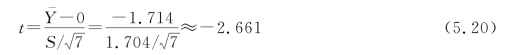 其中S 表示总体Y 的样本标准差,代入样本值后计算出统计量的值为