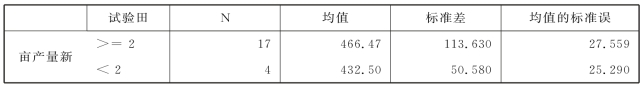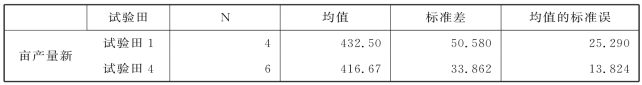 前面在判断4块试验田对应的总体方差是否齐性时,得出了其不具有方差齐性的结论,那么这里的两两多重比较也就是两个总体间方差的判断,是否还应读取“不假定等方差”的检验结果?我们不妨和第5章学的独立样本t检验的SPSS结果做一下对比,输出结果如表6.8~表6.11 所示。