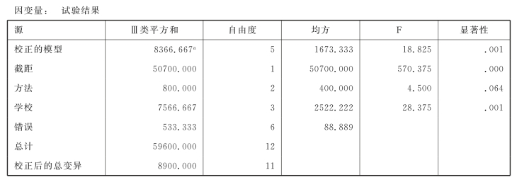 表6.12 3种教学方法在4个不同的学校的试验效果