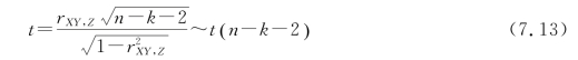 其中,n 是样本容量,k 是被剔除(控制)了的变量个数,rXY,Z根据实际情况也可以换为