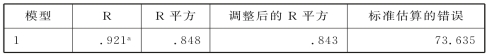 表8.2给出了R(复相关系数,此处即简单相关系数)、R 平方(判定系数R2)、调整后的R 平方标准估算的错误