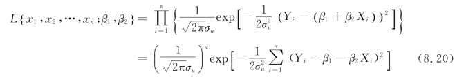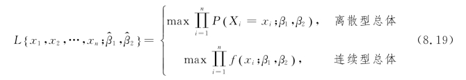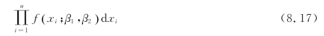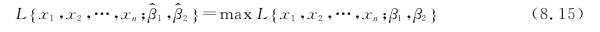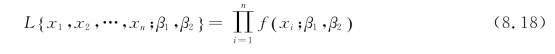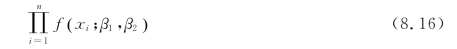 其值随β1、β2的取值而变化,与离散型的情况一样,我们取β1、β2的估计值使概率式(8.17)取到最大值,但因子