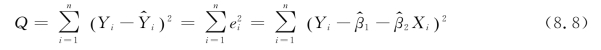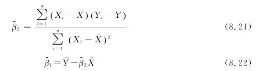 在例8.1中,有在估计参数β1、β2时,前面提到的两种方法都是取使得