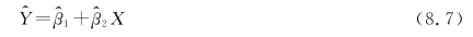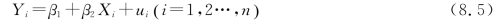 还是先以一元线性回归为例来讨论,对于一元线性回归式Y=β1+β2X+u 来说,X 也可以代表和Y 有非线性关系的其他模型,如在第7章中,如果得出Y 和ln Z 存在显著的线性相关关系,则也可以将其转化为线性模型Y=β1+β2ln Z+u 来求解。