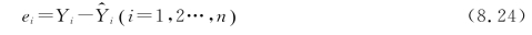定义8.4 Y 的实际样本观察值与样本计算值之间会有一个偏差,这个偏差被定义为残差项、剩余项或残差向量,设为对于样本Y1,Y2,…,Yn来说,