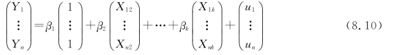 如果是多元线性回归,则在模型Y=β1+β2X2+…+βkXk+u 中代入样本后,可得