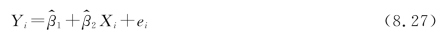 样本回归直线是对样本数据的一种拟合,不同估计方法可拟合出不同的回归线,从例8.1的散点图来看,样本回归直线与样本观测值总是在一定程度上存在或正或负的偏离。