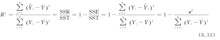其中,表示由样本回归做出解释的离差平方和在总离差平方和中占的比重;