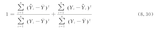 其中:称为总离差平方和(Total Sum of Squares,SST);因变量Y 的样本估计值与其平均值的离差平方和