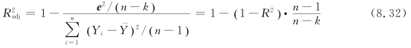 定义8.7 校正的判定系数修正了统计量R2中不含自由度的问题: