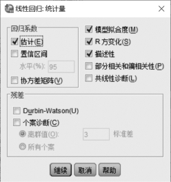 ⑤单击“线性回归”对话框右侧的【Statistics】按钮,弹出一个新的对话框,如图8.5所示。