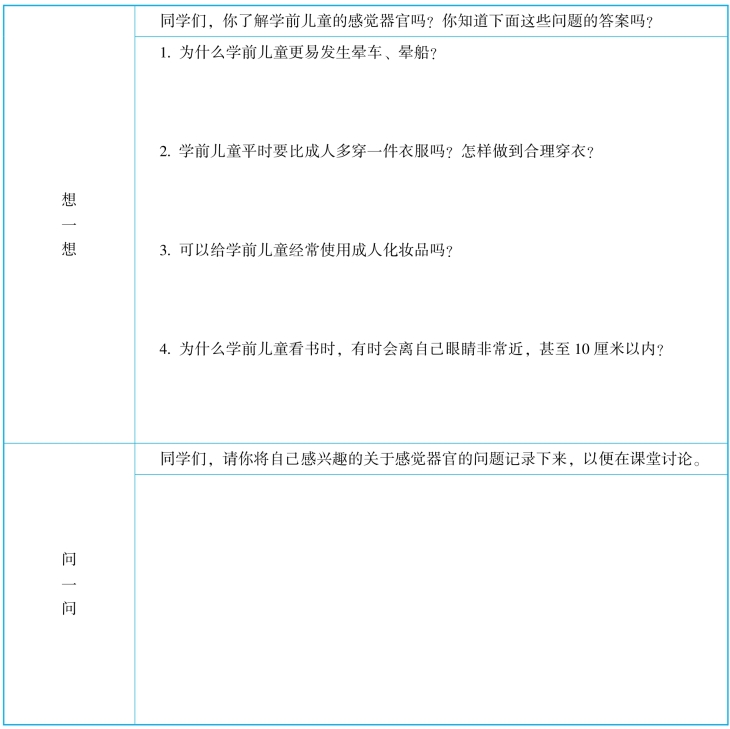 表1-7-1 感觉器官学习任务单(一)