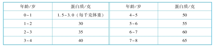 表2-4-3 学前儿童每日膳食中蛋白质的推荐摄入量