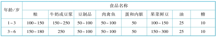 表2-4-6 1~6岁儿童每日需要食物的种类与数量 克