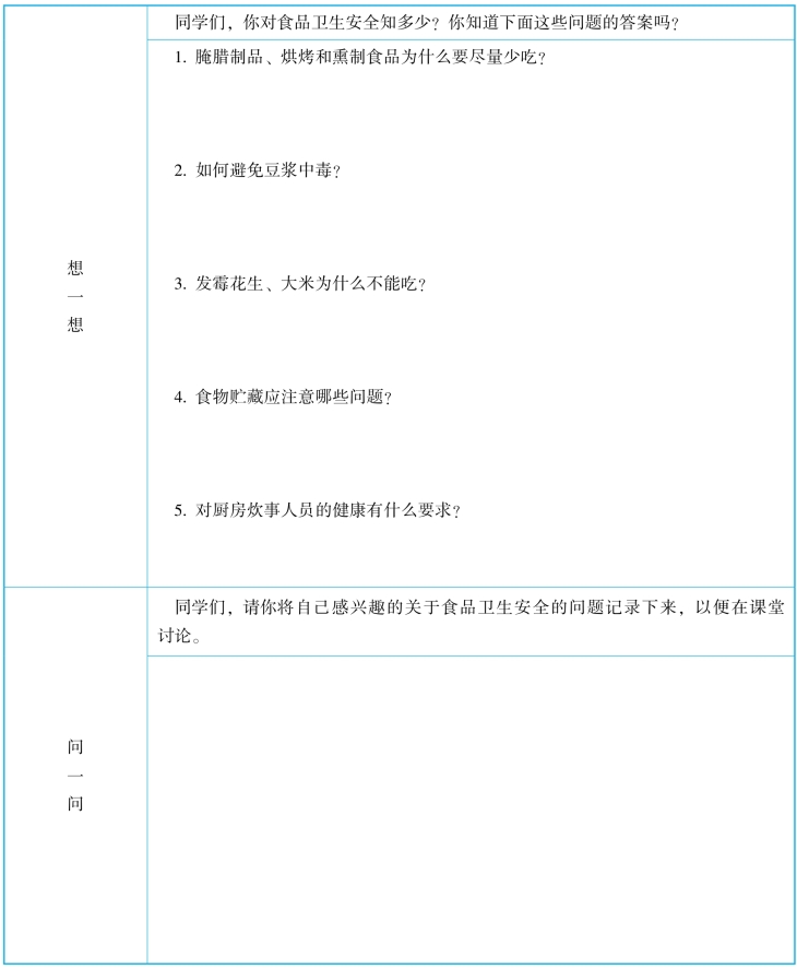 表2-4-7 食品卫生安全学习任务单