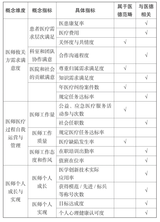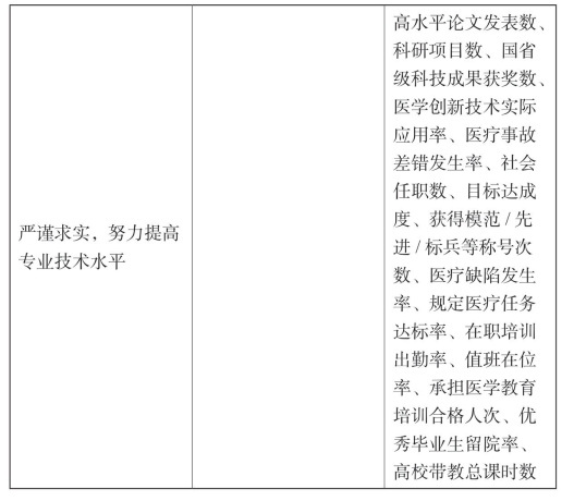通过对所构建的公立医院医师绩效评价各维度下子指标体系中指标进行归纳梳理(归纳结果见表4-10),发现部分指标属于医德范畴,直接体现和反映了医师医德医风表现情况;绝大多数指标与医德内涵相关,在医师绩效指标中间接体现了医德医风内涵;其他指标虽然未归入以下类别中,但本质上助添了医师绩效评价的全面性,体现了该绩效评价指标体系的导向性与发展性。