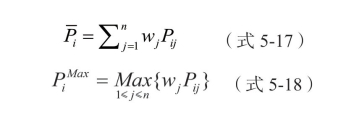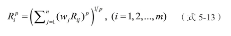 不难看出其关键在于恰当地选择参数p 值,特别地,当p =1时,式(5-13)具体化为,即为熟知的加权算术平均,其特点在于所有指标完全补偿,也就是说,表现较差的指标可由较好的指标补偿。当p →∞时,式(5-13)趋近于