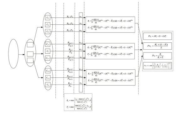 步骤5:计算医师绩效评价结果Pxi 。通过式(5-25)或式(5-26)或式(5-27)或式(5-28)将奖赏综合指数与惩罚综合指数聚合得到医师Ai最终的绩效结果Pxi 。