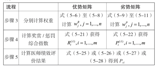 步骤4:分别计算医师绩效奖赏 Ri 和惩罚的综合指数 Pi。通过式(5-21)计算出医师Ai绩效奖赏综合指数,通过式(5-22)计算出医师Ai绩效惩罚综合指数。