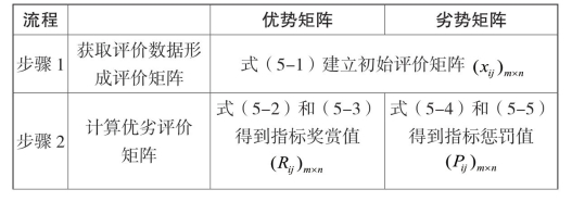 步骤3:获取指标权重wj。通过式(5-6)至(5-8)计算得到优势评价矩阵的各指标权重;通过式(5-9)至式(5-11)计算得到劣势评价矩阵的各指标权重