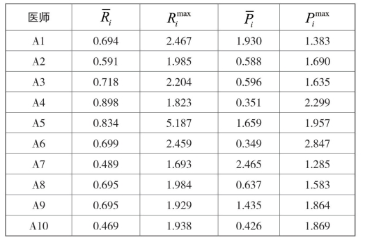 接着,类似于医师自我运营的子系统评价过程,运用式(5-15)至式(5-16)分别计算这些医师奖赏值和惩罚值的加权指标平均值、最大个体指标惩罚和奖赏值,部分计算结果具体地列于表6-15。