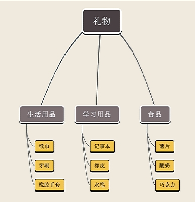 在分类时,幼儿把物体一个个加以区分,并且进行相互比较,撇开不同的东西,把握共同的东西,并把一个个相同的东西归并在一起。教师引导幼儿将妈妈的礼物进行分类,这一过程中幼儿首先要了解分类的标准,再对每一个物品的属性加以区分,最后用思维导图进行记录。教师结合主题开展一系列活动,在主题活动与思维导图的巧妙融合中促进幼儿分类能力的提高。
