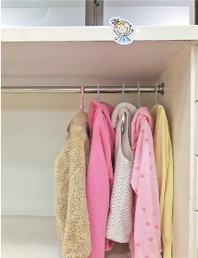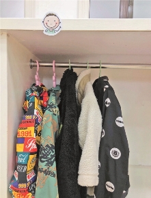 在幼儿私人物品的摆放中,我也设置了重重“考验”。例如:在挂衣服区域粘贴了男生女生标识和衣架标识,引导幼儿在挂衣服的过程中自主分类;在书包的摆放区域,粘贴了大、小标识,引导幼儿在比较的过程中学习区分大和小……