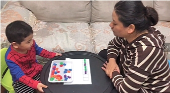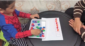 所需材料:一张卡纸、记号笔、若干彩色小熊(积木块、彩色纸片)。