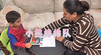 2.可根据幼儿的情况,酌情增加游戏难度(如增加彩色小熊的数量;增加方格的数量;跳着空出几个方格,由幼儿进行摆放)。