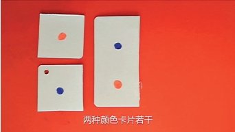 所需材料:若干卡片,画上几种颜色的圈圈。