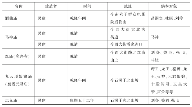 综观上表,清代承德坛庙主要分为敕修、官修、民建以及僧建等几种类型,分布范围广泛,体系较为庞杂,细酌之则隐然可见其“杂而有序”的特点。从崇祀对象观之,大体可分为四个系统,其一为具“安邦土”功能的神祇,有关帝、城隍神、土地神等;其二是寓“化人民”神职的神祇,包括孔子及其陪祀、文昌帝君、魁星、名宦、乡贤等;其三是以“保衣食”为目标的神祇,如神农氏、厉山氏、后稷氏、土地神、五谷神,风、云、雷、雨、山川之神以及龙王、水神、雹神等;其四是以“护行业”为中心的神祇,有马神、药王、酒仙、鲁班等等。从数量上来看,承德关帝庙数量居首位,这一点与全国各地一致。清代关帝信仰达到顶峰,“关帝庙祀遍天下,各直省府州县建祠设像守土,官吏岁时展谒典礼”。正是源于国家的提倡,承德地区才会出现多座敕修的关帝庙,以突出关帝“守土佑民”的神职,此外尚有诸多民建的“老爷庙”,以供民众祈福崇拜,表达日常生活的诸多诉求,如祛病除灾、延年益寿等愿望,可见关帝信仰世俗化倾向较为明显,关帝的神职也远远超出其安邦守土的范围。