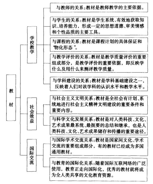 自“赫尔巴特教育学”至今,教育界常常将教材(Subject Matter)界定为教师和学生的“第三者”,即教材不仅是教师授课的素材,需要教师进行处理,而且也是学生在一定程度上选择学习和自主处理的素材。从课程论的视角看,教材是课程标准规定下的课程内容在教学活动中转化的产物,它源于实质性的科学、文化、艺术、体育、生活的各个领域,并以计划的形式表现出来;它涵盖了学生在教师指导下通过学习活动,在心理上和实践中主动地掌握普通教育和专业教养的物质对象与观念对象。从教学论的视角看,教材的内涵体现在三个方面:①为使学生形成特定的知识体系所勾画的事实、概念、法则和理论;②同知识紧密相关的有助于各种能力形成并熟练的、系统习得的、心理作业与实践作业的各种步骤、方式与技术;③与知识和能力体系紧密相关的、奠定世界观基础的表现为信念、政治观、世界观和道德观的认识、观念和规范。