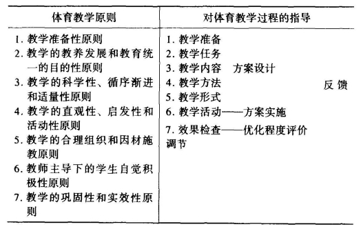 最近,樊临虎先生提出了较新的原则体系(①增进健康与促进学生全面和谐发展相统一原则;②教师的主导作用和学生的主体作用相统一的原则;③适宜的负荷与间歇相统一的原则;④掌握体育“三基”与发展体能相统一的原则;⑤直观性、启发性与活动性相统一的原则;⑥循序渐进与重点突出相统一的原则),亦可以给我们不少启示。