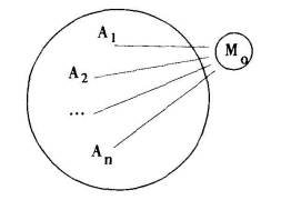 绝对性评价(Absolutive Evaluation)是指以预先设定的教学目标为基准,并以此目标去评价每个对象的评价类型。其特点是:评价标准比较客观、科学。绝对性评价的评价标准是客观、固定的,评价结果只与对象自身的水平相关,而与其所处的集体无关。假设绝对性评价的元素为A1,A2,…An,预设的教学目标为M0,则绝对评价如(图9-2)所示。我国高中会考属于绝对性评价。会考成绩反映了学生掌握教学大纲要求的程度,个人学习越深入,其结果越好,这一结果不受其他学生学习状况的影响。