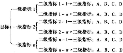 3.确定指标体系权集,根据各项指标的重要程度来确定它们的权重和权集,为量化分析作准备。权集(权重或权系数集合之简称)是确定各指标同评价结果之间重要程度的关系集。权重是相应的指标对达到目标的影响程度。