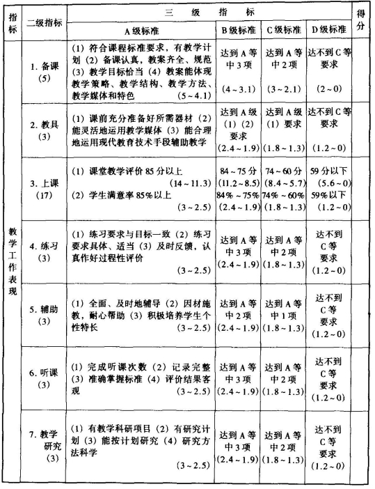 原先的评价一般采用主观评议法,由评价者根据自己的经验和听课的印象作出主观描述。此法简便易行、便于组织和推广,但由于各人一把尺,主观随意性大,结论的可靠性差;评价结果也缺乏可比性,不能适应现代教学管理的需要。近年来多采用综合评价法,有科学的评价指标体系,评价者按照评价指标评议,最后采取定量、定性相结合的方法作出结论。