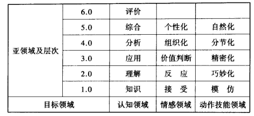美国芝加哥大学教授布卢姆于1956年首次将分类学理论运用于教学领域。布卢姆与他的同事认为,教学目标可分成认知、情感、动作技能三大领域,从实现各领域的最终目标所要经过哪些系列目标出发,明确定出具体的目标体系。这种分类体系归纳出超越具体教学内容差异所反映出的共同心理行为特性,涉及的目标只是反映能力和特性结构,而不包括其实质内容。(表11-1)是一简化了的基本结构表。