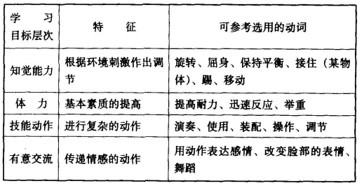 表11-3 编写动作技能学习目标可供选用的行为动词