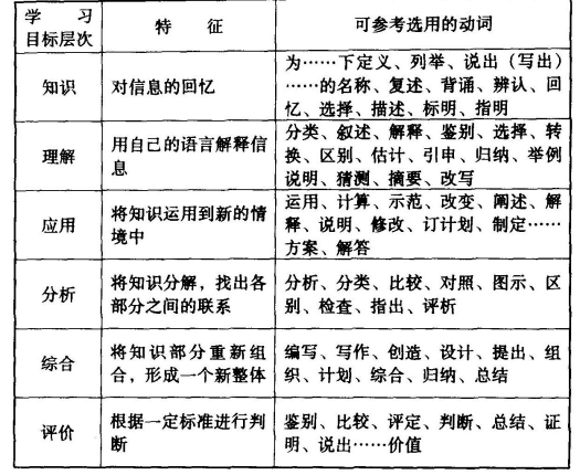 学习目标分为不同的种类,各家分法不一致,影响最大的是布卢姆的分类法和加涅的分类法。学习目标的编写方法,影响较大的是美国学者马杰(Robert F.Mager),他于1962年出版了(程序教学目标的编写》一书,系统地提出了使用行为术语陈述教学目标的理论与方法。马杰指出:必须以具体明确的表述方式说明学生完成学习任务以后应该达到的行为指标。