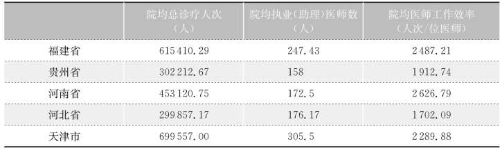 表3-2 五省(市)2019年院均县级综合医院医生效率情况对比