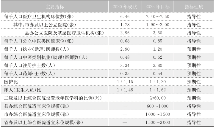 《规划》上调了医师数、基层医疗卫生机构床位数,同时明确,到2025年,全国医疗机构设置规划中,县办公立医院及基层医疗卫生机构每千人口床位数指导性要求为3.5(表5-1)。这个数据较2020年上调18%,高于其他医疗机构,简单来说就是基层医疗卫生机构床位数要增加,并且有了明确目标。