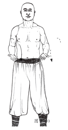 1.马步站立如前势;两掌向左右展开,成一字平肩状,掌心向上;目视前方。(图2-9)